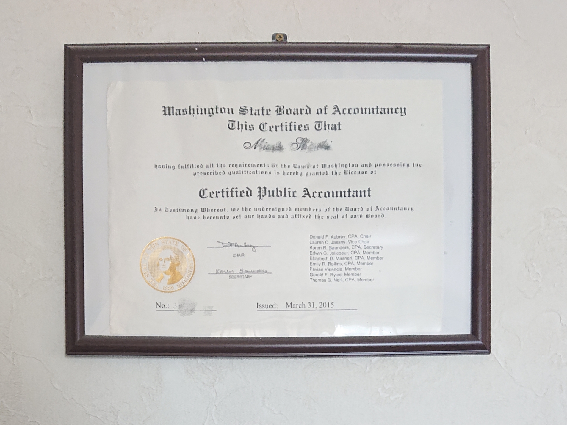 ※写真は合格後にアメリカから届いたライセンス証書です。